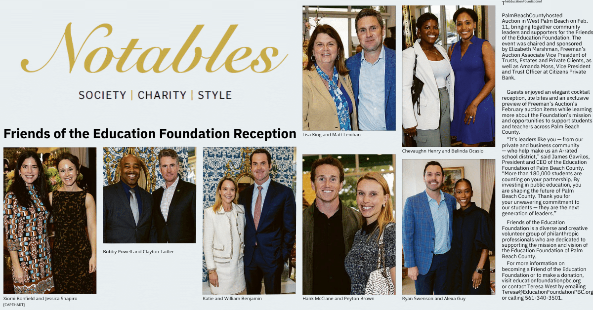 Palm Beach Post Notables Features Friends of the Education Foundation Reception Read More April 13, 2026